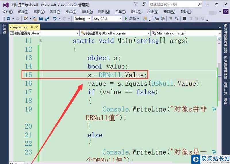 9、將s的值更改為DBNull.Value,如下圖所示。