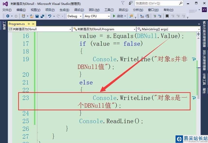 7、最后,當條件不成立時,即值為真時,則輸出對象s是一個DBNull值。