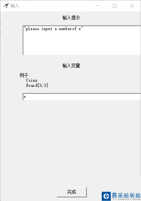 3、在輸入框上方輸入 "please input a number of x" 下方輸入 x。