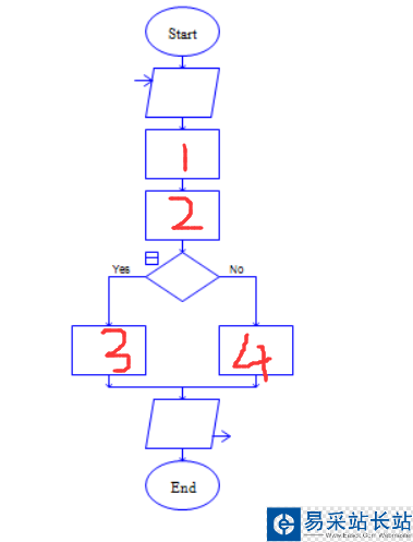 2、依次添加 輸入 選擇 賦值 賦值 輸出 符號,添加完后如圖所示。