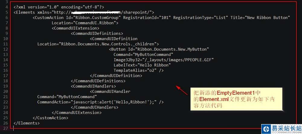 5、把新添的EmptyElement1中的Element.xml文件更新為如下內(nèi)容方法代碼