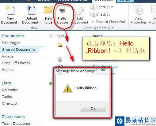 6、點擊彈出:Hello ,Ribbon!--》對話框。