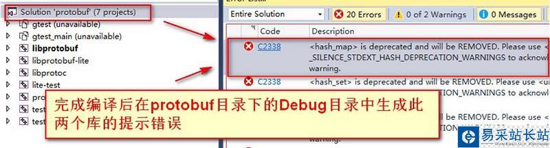 4、完成編譯后在protobuf目錄下的Debug目錄中生成此兩個庫的提示錯誤如下
