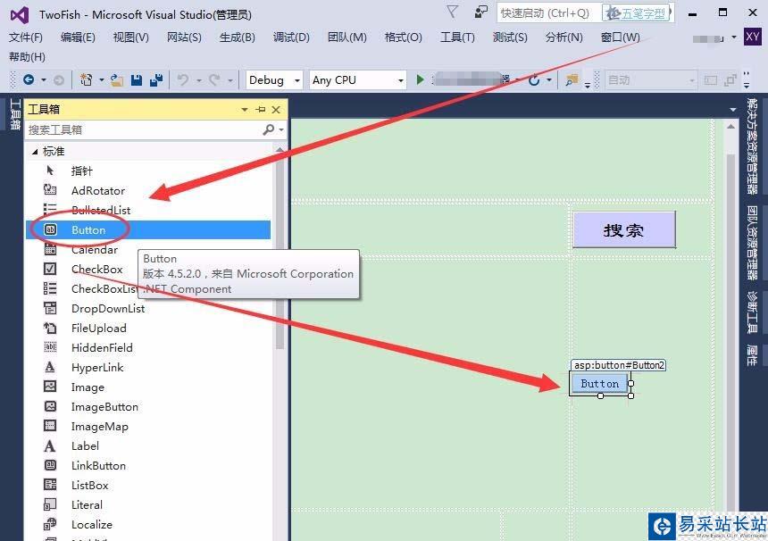 2、Button是按鈕控件,可以插入一個(gè)按鈕。