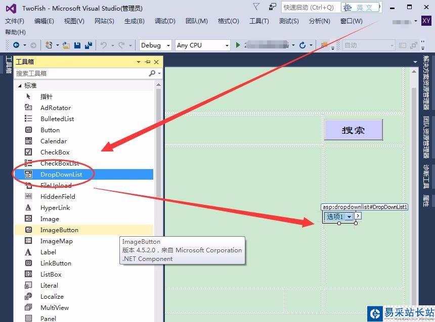 6、DropDownList是下拉列表框,該控件可以插入一個(gè)下拉列表框,用戶可以選擇設(shè)置的選項(xiàng)。