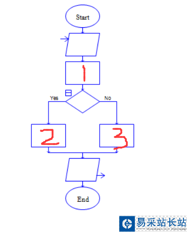 2、會看到已經有Start 和End了 在這兩個之間依次添加輸入 賦值 選擇 賦值 賦值 輸出 符號。添加完后如下圖所示