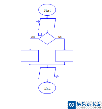 2、依次在 Start 和 End之間添加 輸出 選擇 賦值 賦值 輸出 符號(hào)。添加完后如圖所示