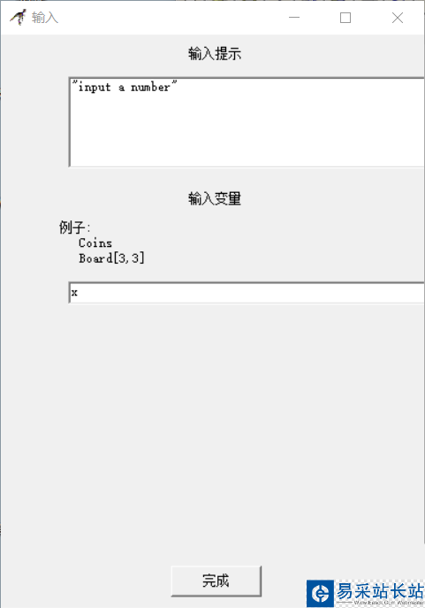 3、雙擊輸出框,在上方輸入"input a number" 下方輸入 x