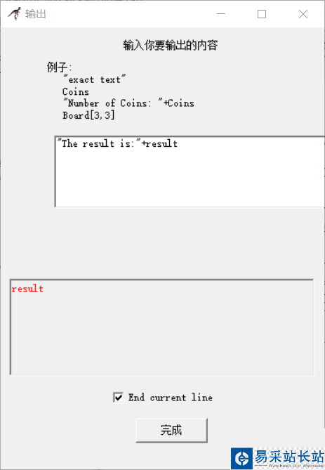 6、在輸出框輸入 "The result is:"+result 也可直接輸入 result 你可以試一試這兩個運行結果有何不同