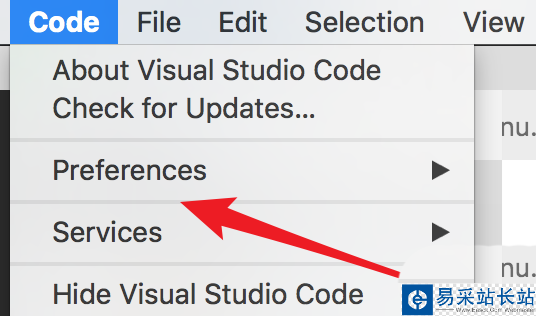 1、打開vs code后,點擊菜單欄上的‘Code’。