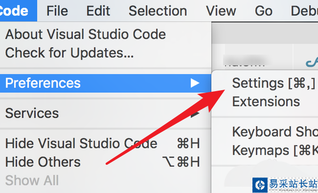2、在下拉菜單上,點擊‘Preferences’。
