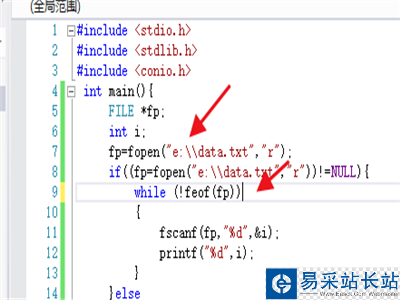 3、第三然后創建指針fp和變量i。再用fp讀取文本文件。