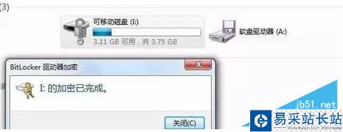 6、等待提示為“加密已完成”的窗口,說明是已經完成了;