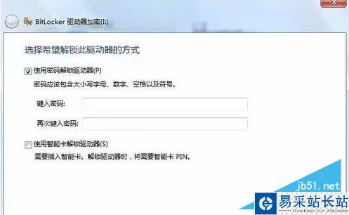 2、在接下來的頁面中選中“使用密碼解鎖驅動器”的選項,然后輸入框中進行輸入密碼和確認密碼,點擊“下一步”;