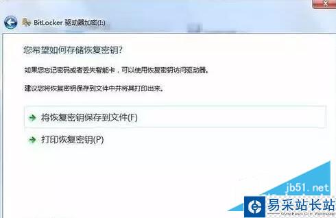 3、彈出一個提示頁面,單擊“恢復密匙保存到文件”;