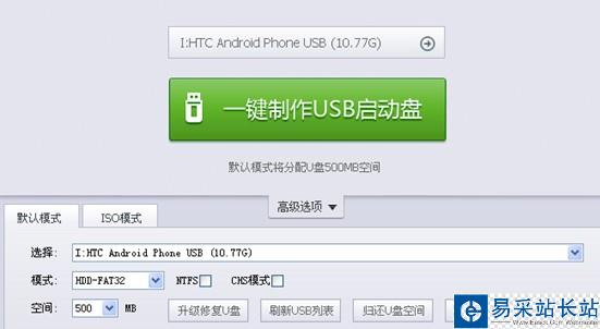 2、 插入空白U盤之后,在高級中選中該U盤,點擊 “一鍵制作USB啟動盤”按鈕,程序會提示是否繼續,確認所選U盤無重要數據后開始制作:如圖2、3