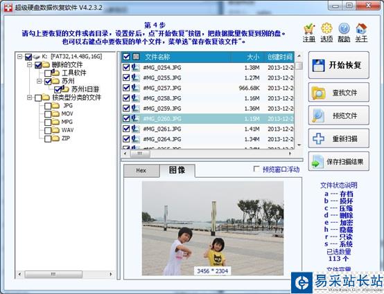 掃描后,列出來很多丟失的文件,我們很容易看到這次被刪除的目錄“蘇州1日游”,里面有不少照片,我們一個個圖片點擊,預覽很完整,圖片恢復沒問題。(軟件中的文件夾和圖片文件的圖標上有個英文字母d字,表示這些文件是被直接刪除的,做了刪除標志)。