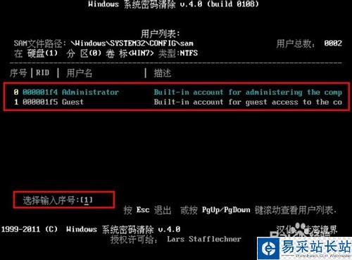 步驟九:想清除設置的登錄密碼的話在第二個界面選【02】,密碼便會被自動清除,下次登錄不用登錄密碼也可以進入操作系統了,操作步驟如下: