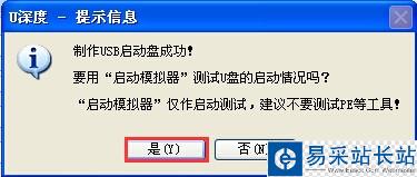 6、提示完成后,提示是否進(jìn)行“啟動(dòng)模擬器”測(cè)試,我們點(diǎn)擊“確定”,這樣就可以模擬從U盤啟動(dòng)了,但是切記不要進(jìn)行PE系統(tǒng)和其他工具的測(cè)試。按ctrl+alt鍵可以釋放鼠標(biāo)將模擬啟動(dòng)窗關(guān)掉,如圖所示: