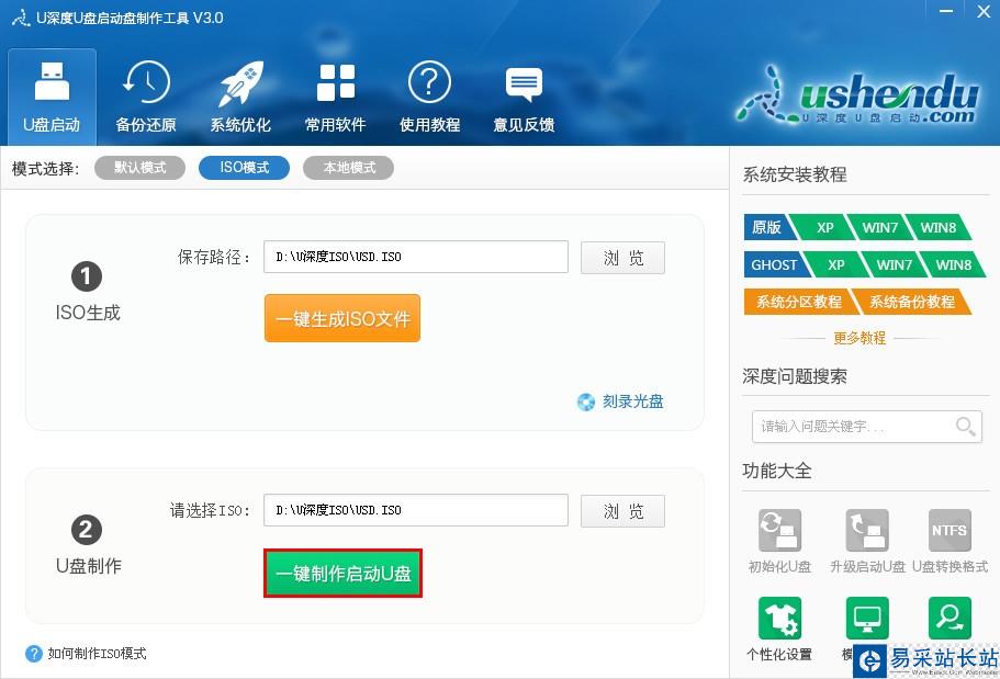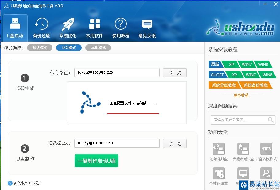u深度U盤啟動(dòng)制作工具V3.0中ISO模式制作U盤啟動(dòng)盤的方法就介紹到這里,不想使用默認(rèn)模式制作或者默認(rèn)模式無法制作成功的朋友可以選擇使用ISO模式進(jìn)行制作。