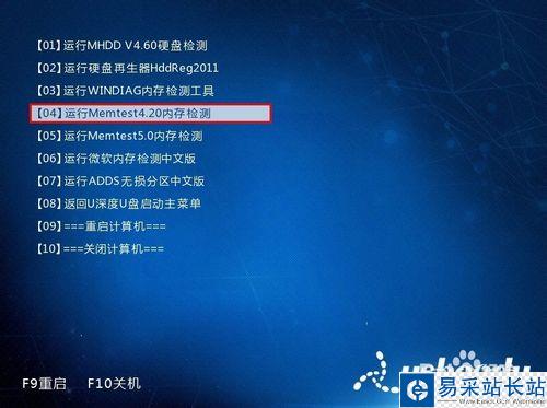 1、備一個制作好的U深度U盤啟動盤,關機狀態下將U盤插進USB接口,然后開機,畫面出現LOGO時按下U盤啟動快捷鍵進入U深度U盤啟動主菜單,選擇“【08】運行硬盤內存檢測掃描工具菜單”,按下回車鍵進入,如圖所示: