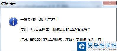 4、一鍵制作啟動U盤完成后彈出提示窗口,點擊“否”完成并退出工具,點擊“是”完成并進入模擬器