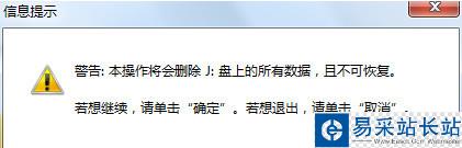 2、隨即彈出一個警告提示窗口,點擊“確定”按鈕繼續