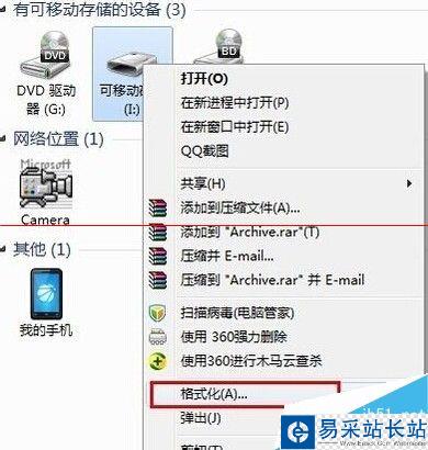 4、當以上方法解決不了u盤無法打開的問題時,建議進行u盤格式化操作,將鼠標移至有問題的u盤圖標上,單擊鼠標右鍵,在彈出的選項菜單中點擊“格式化”,如下圖所示: