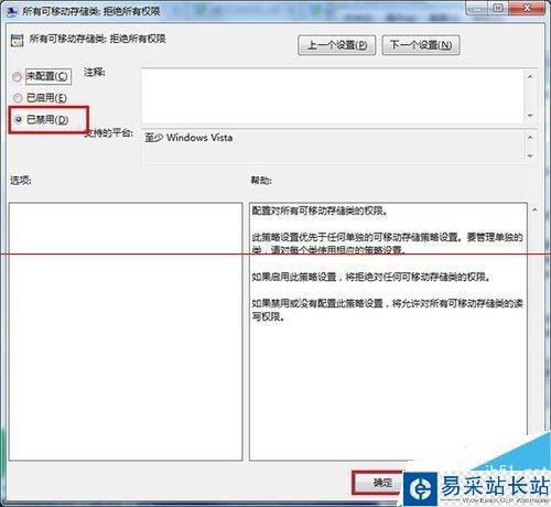 8、接著在彈出的窗口中點擊“已禁用”單選按鈕,在點擊“應用——確定”按鈕,如下圖所示: