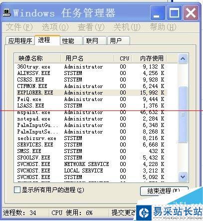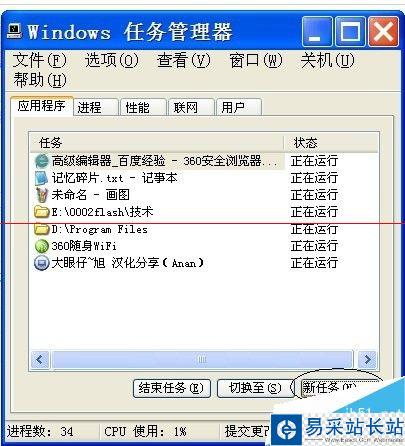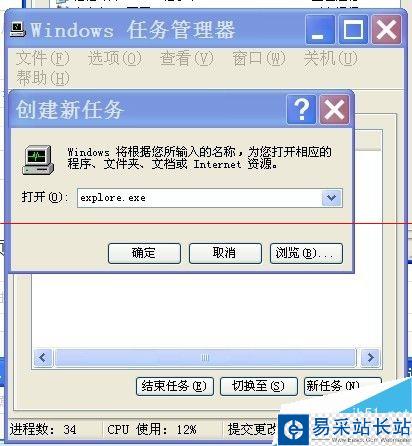 5、如果1、2方法失效,同時按下【ctrl】+【alt】+【delet】,彈出資源管理器,切換到進程界面,所有進程按名稱排序,找到explore.exe,結束該進程;切換回應用程序界面,點擊【新任務】按鈕,重新運行explore.exe,然后,重復1或者2方法,順利安全彈出U盤或移動硬盤。