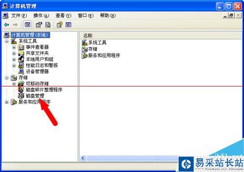 2、然后我們依次打開“計算機管理器”,在計算機管理器中找到儲存一欄,點擊“磁盤管理”。