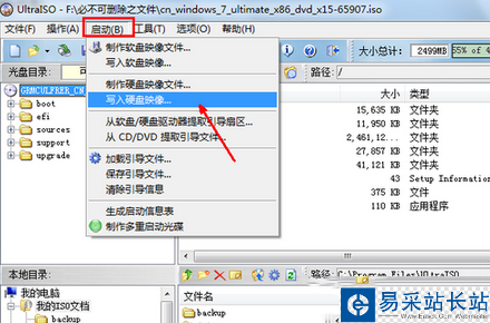 點擊上方菜單欄中的啟動選項,在彈出的菜單中單擊寫入硬盤映像這個選項。