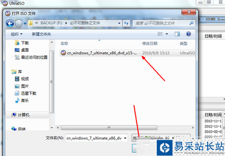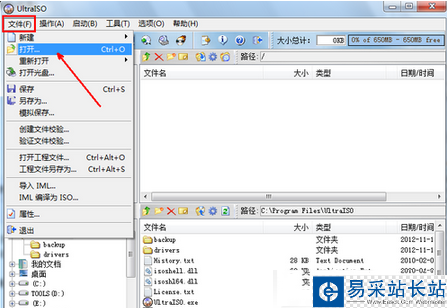 點擊“文件”菜單下的“打開”按鈕,打開一個你要裝進U盤的操作系統鏡像。