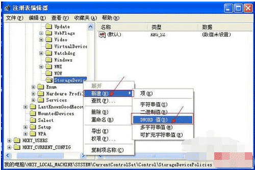 查看U盤目錄下的文件數是否達到最大允許值,運行regedit.ext,進入注冊表編輯器,依次找到HKEY_LOCAL_MACHINE/SYSTEM/CurrentControlSet/Control/StorageDevicePolicies(如果沒有StorageDevicePolicies,則可以新建一個,方法是:右鍵單擊Control選擇“新建”,選擇“項”,輸入StorageDevicePolicies即可。如圖: