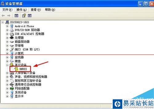 3、這里我們可以看到設備管理器中RNDIS設備這里出現問題,驅動不正常。