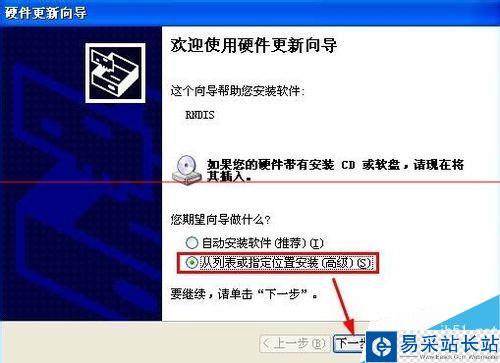 6、硬件更新向導中,我們選擇從列表或指定位置安裝,然后點擊下一步。