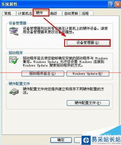 2、在系統屬性窗口的硬件中點擊設備管理器打開。