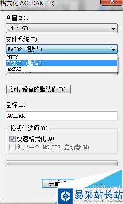 2、如果不是,那么我們就需要把U盤進行格式化,轉化它的文件系統格式。選擇格式為FAT32,因為車載usb系統基本不支持NTFS格式的U盤。