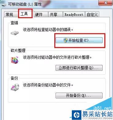2、在打開的“屬性”窗口中,切換至“工具”選項卡,點擊“查錯開始檢查”按鈕。