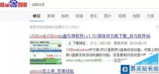 1、上網搜索并下載“USBOOT”程序。由于該程序執行U盤的修復操作具有一定的危險性,因為如有可能,做好U盤相關數據的備份工作。