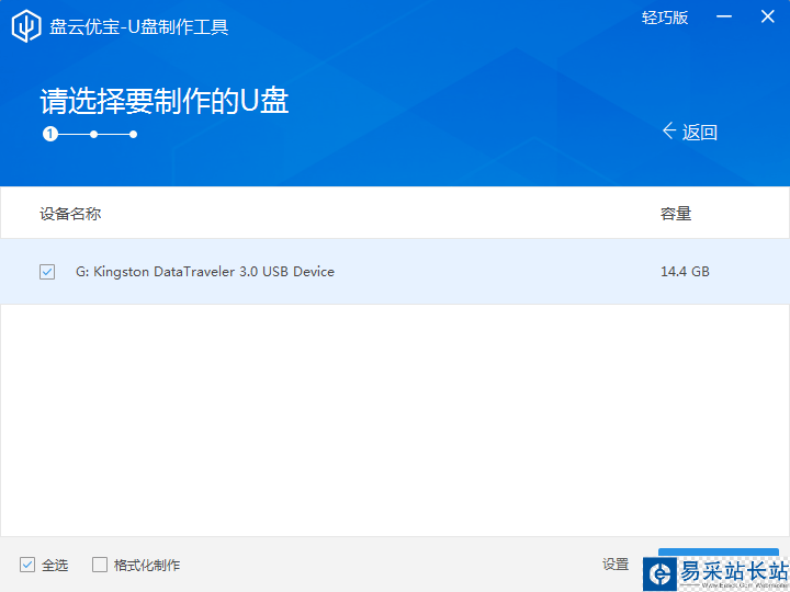 注意:默認是無損制作U盤,不會丟失U盤內保存的資料。如果想要格式化制作,請勾選左下角的復選框。