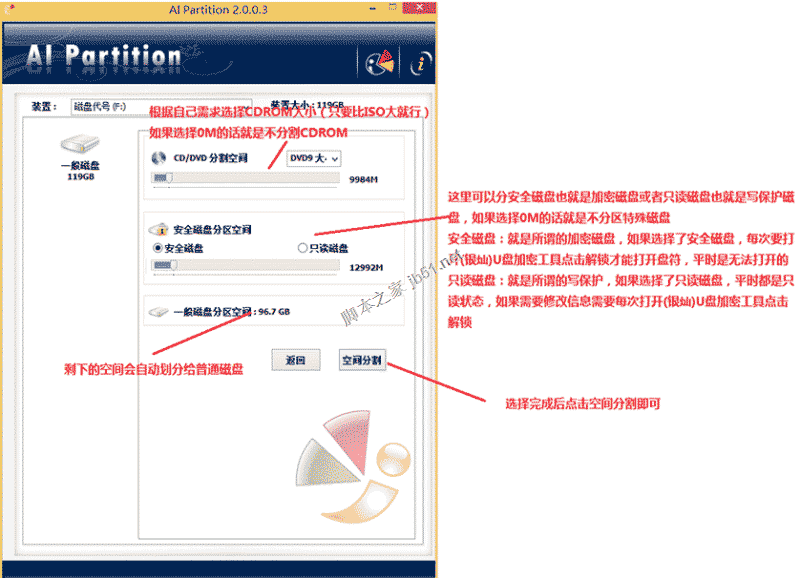 安全磁盤就是加密磁盤或者只讀磁盤也就是寫保護磁盤,如果選擇OM的話就是不分區特殊磁盤