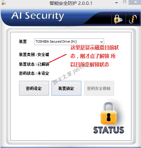 11、這里是現實磁盤目前狀態,剛才點了解鎖所以目前狀態解鎖狀態