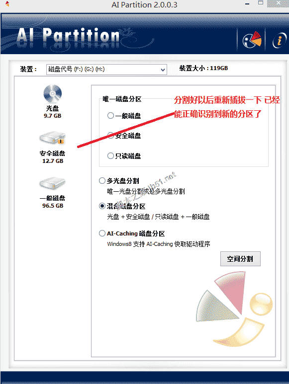 2、打開AI Partition(銀燦U盤分區工具) v2.0.0.3里的AIPartition