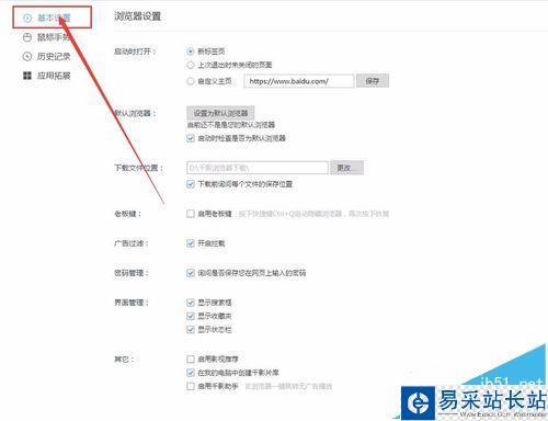 5、在瀏覽器“設(shè)置”對(duì)話框中,選擇窗格的“基本設(shè)置”選項(xiàng)。