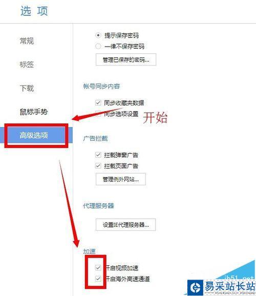 4、點(diǎn)擊“高級(jí)選項(xiàng)”,然后在“開(kāi)啟海外加速上”打上對(duì)號(hào),如圖所示: