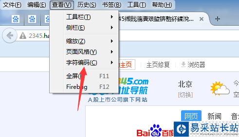 3、彈出了下拉菜單中進行選擇為字符編碼的選項菜單。