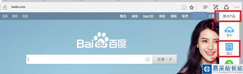 1、進入百度圖片首頁。在百度搜索欄中搜索“百度圖片”或在百度首頁中點擊右側“更多產品”,點擊“圖片”。