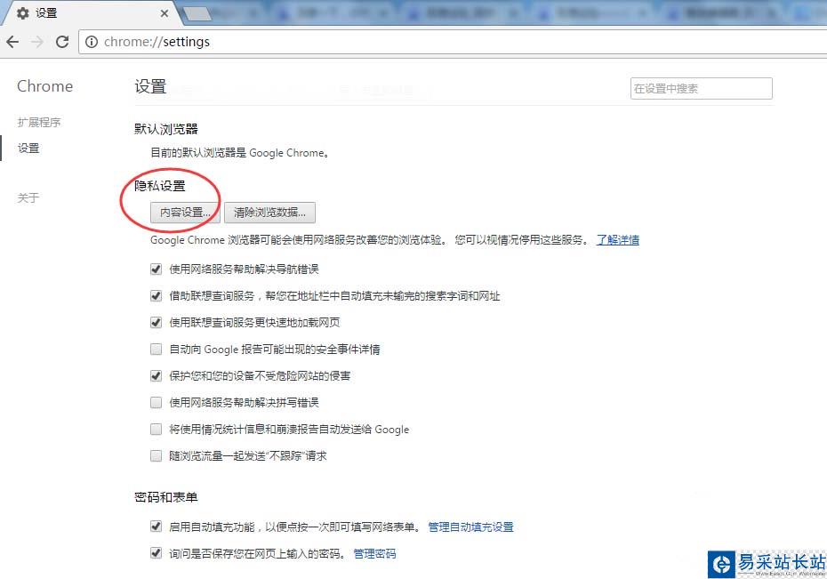 3、再點擊,隱私設置里面的-》內容設置