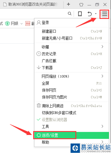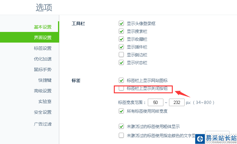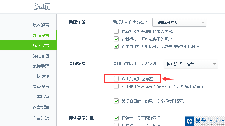 取消360瀏覽器雙擊關閉頁面的設置(取消標簽欄上顯示關閉按鈕